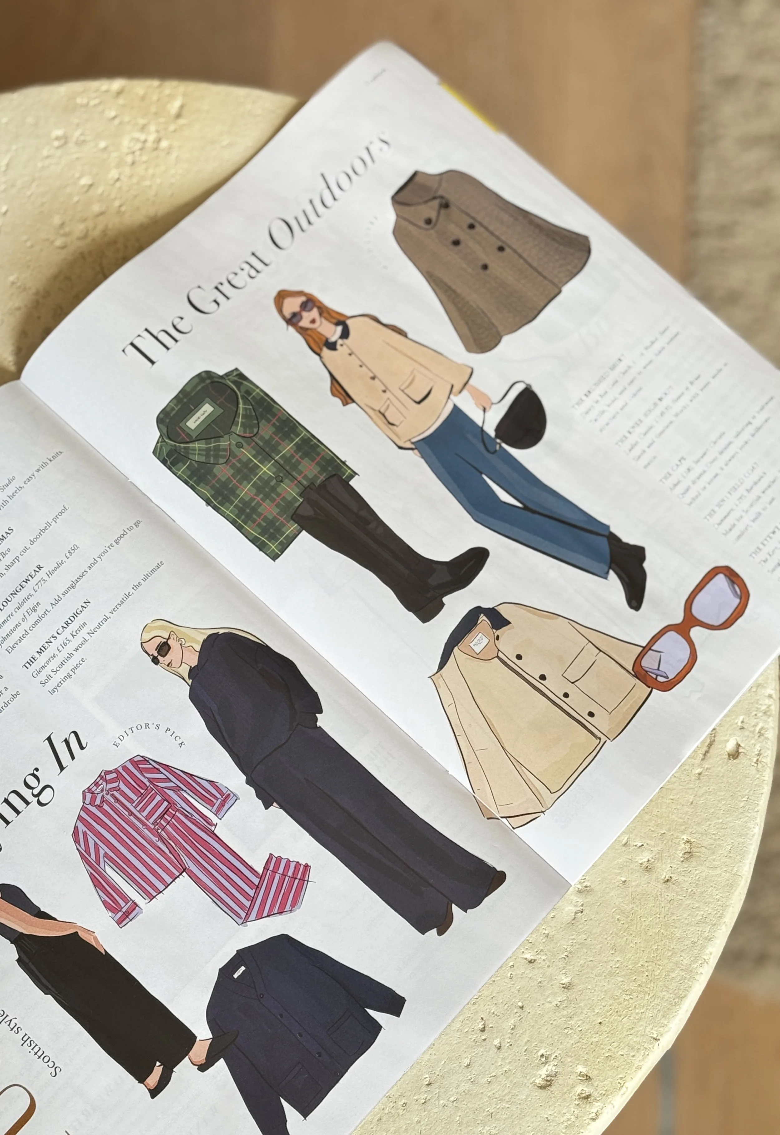 For the Autumn edition of Hood Magazine, I created a series of bespoke fashion illustrations showcasing seasonal clothing. Featured across three pages in the Scottish lifestyle magazine, these illustrations highlight textures, movement, and style through a hand-drawn approach that complements the editorial content.